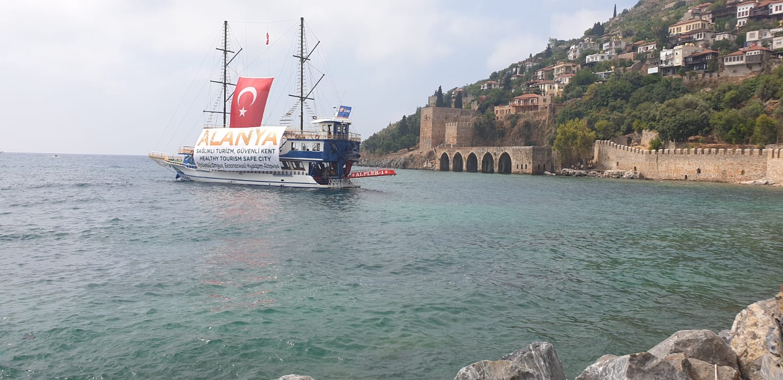Turkish, English and Russian “Healthy Tourism, Safety City” banners were opened in the restaurant where the meeting took place and the boats in the sea.